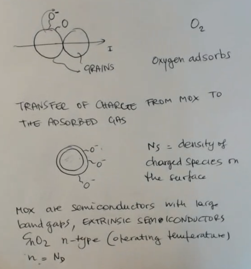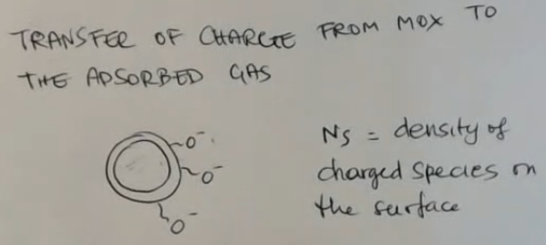 - After being absorbed on the surface, there is a transfer of charge from the sensor (from the metal oxide) to the gas, and vice versa.