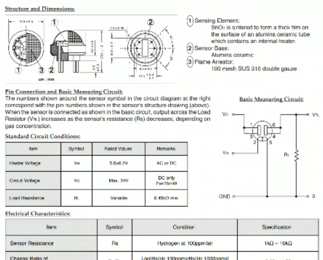 ~Ex.: Data Sheet of a Hydrogen Gas Sensor