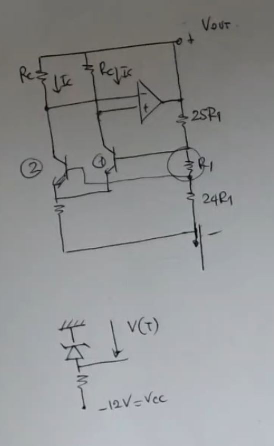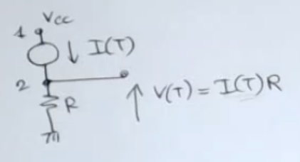 - This time we have this voltage here which is regulated by the current flowing here by this which we know is proportional to the temperature.