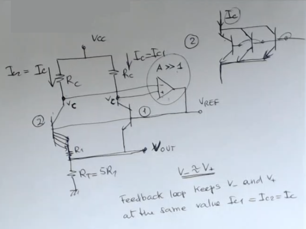 This is like having a more conducting device, where the current is times the current of the single the basic device. - The bases of the BJT (1) and (2) are at the same voltage, and the circuit here is concluded with a feedback loop.