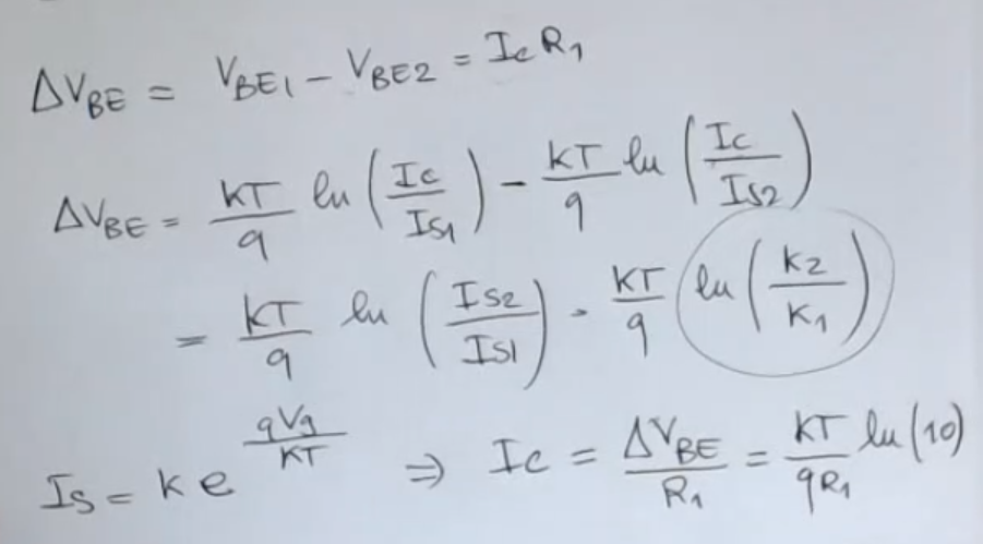 - We have supposed that the ratio but this depend on the structure, since we have that:Then we wil have that since both are equal and is the sum of identical collector currents (since the 2nd BJT is the parallel of many BJT):