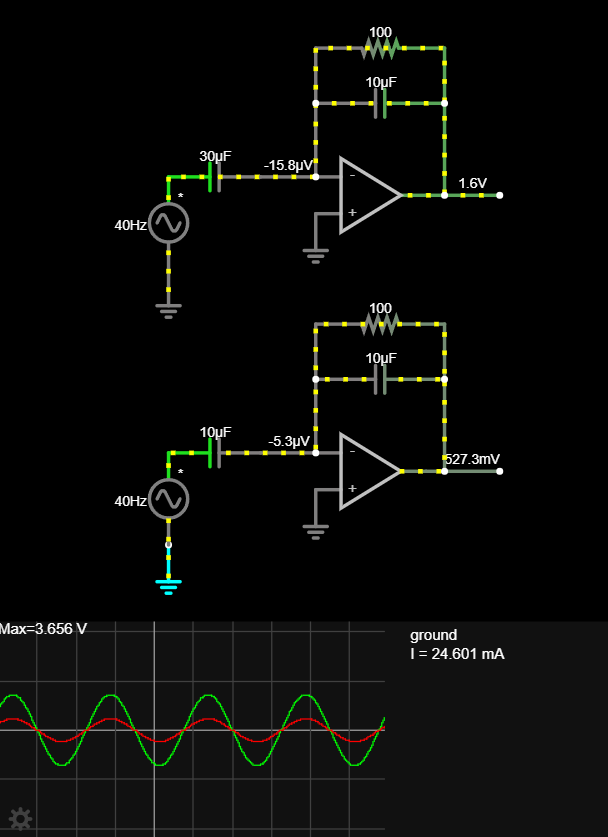 - Here is a simple circuit and as se can see if we change the value of the capacitance of the sensor, we are moduling the amplitude of the output, while the phase is decided by the AC voltage source ()