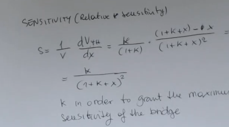 And so linearity requires large value of unless is very small, like in the strain gauge, instead == is the condition for the maximum sensitivity==: