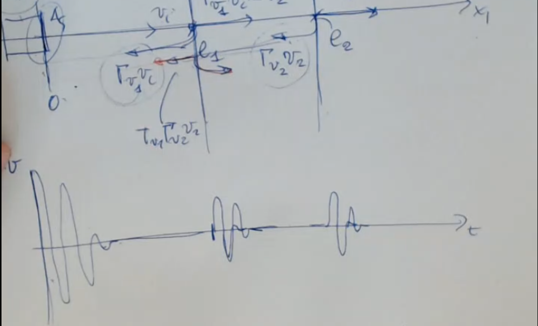 So after the first excitation, a time will pass and I will recive a new signal, the echo of the first one, and ofter another bit of time () I will sense a second echo, the one βreturningβ from the second material.