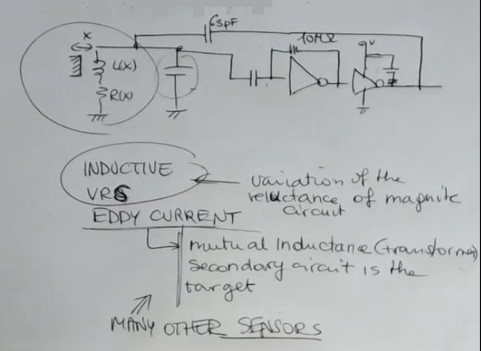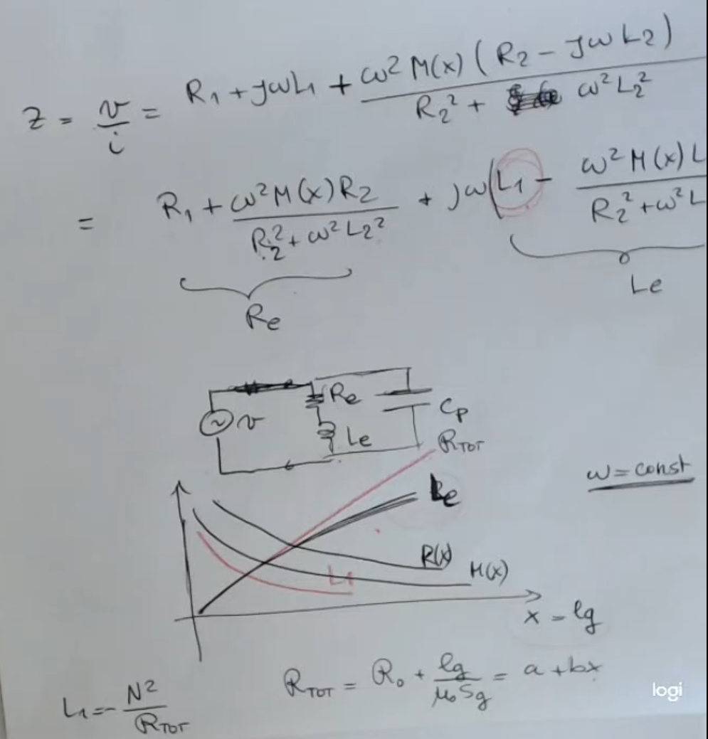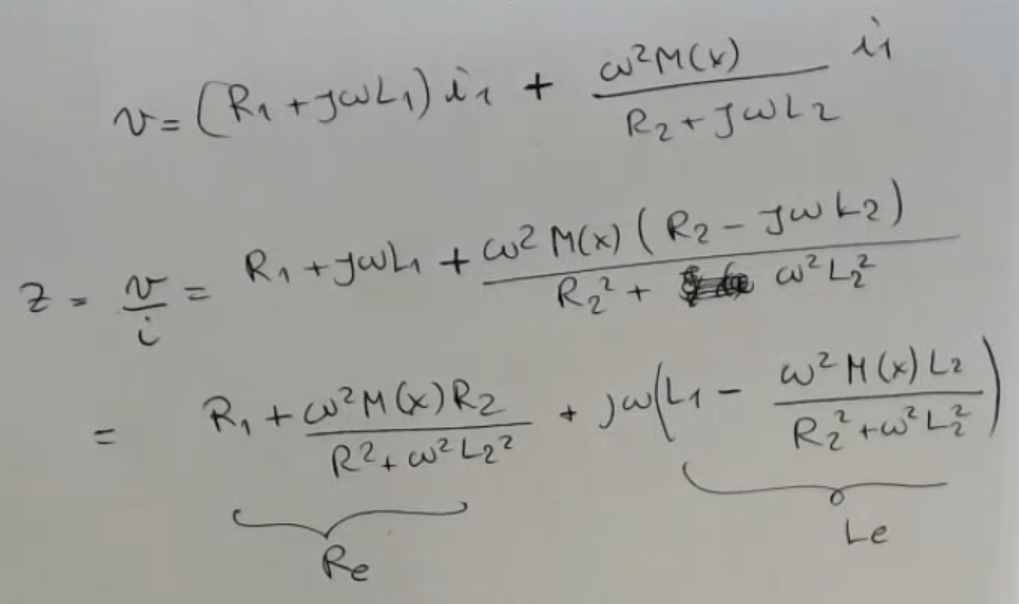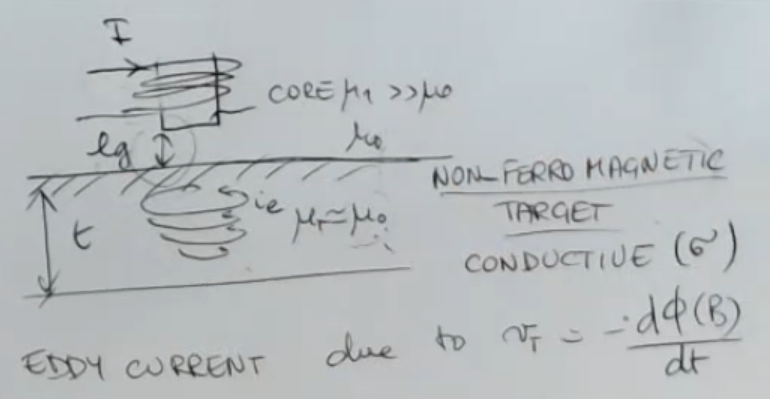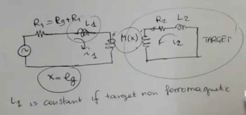 Instead Eddy Current ones are different, the principle of measurement relies on mutual inductance (we have modelled it as a transformer). Where the secondary circuit is the target, and it depends on the primary which is the probe, which also depends on the secondary. ⇒ So there is a mutual coupling and mutual inductance which varies due to the different position of the target and of the inducing circuit (the primary circuit).