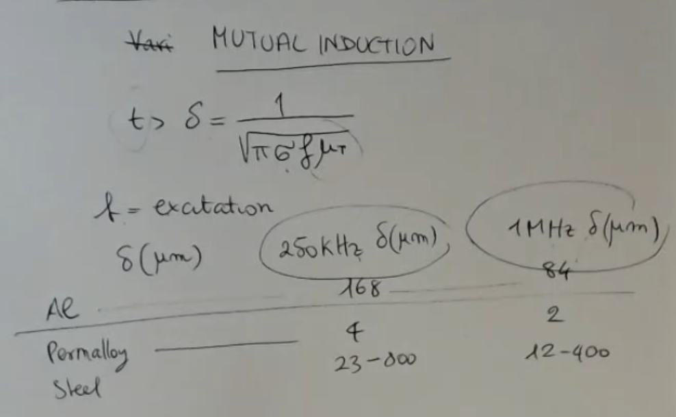 NOTE: measured in m ( m): - ==In order to have this eddy current effect to be “usable”, usually we use very high frequency==.