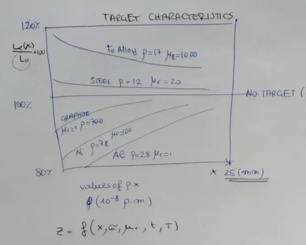 To understand we take the example of the iron alloy: when it is very close to the target will have a increased value with respect to the “no-target reference”. - So the total impedance will depend on:
