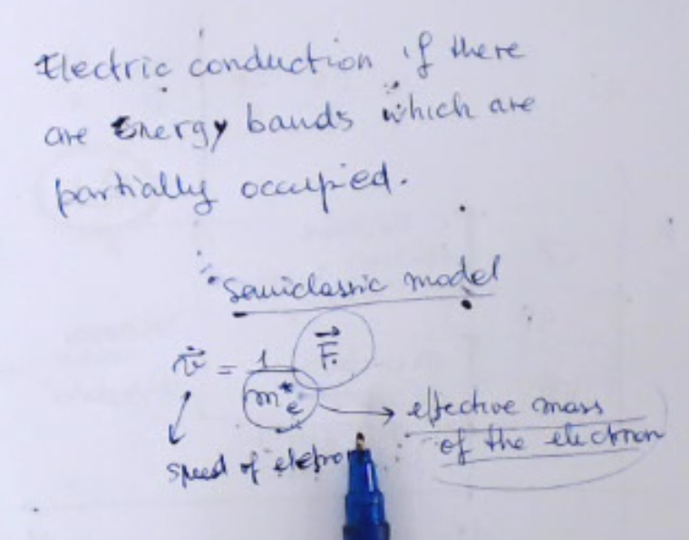 We will describe Electric Conduction using a semi-classic model. So we will describe the motion of electrons using this formula here, where: