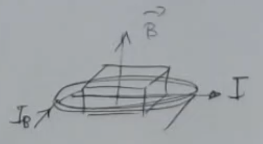 - Then we consider to let a current flow through this conductive material, which in principle can be any conductive material.