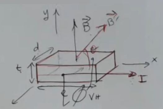 - We consider to have a slice of conductive material, the slice has thickness , width and length , immerged in a magnetic field .