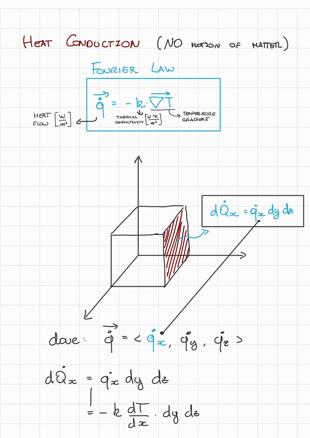 • is the thermal conductivity, it is similar to the convective heat transfer coefficient but it does depend on space, its unit of measure is: