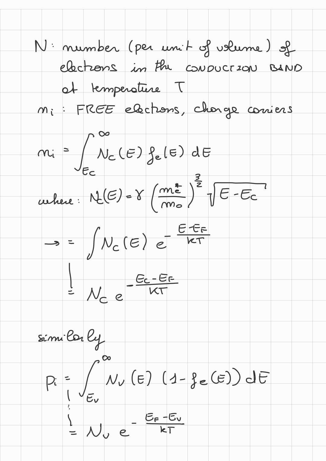 NOTE: We don’t care about the electrons in the valance band and of holes in the conduction band, since they are not carriers.