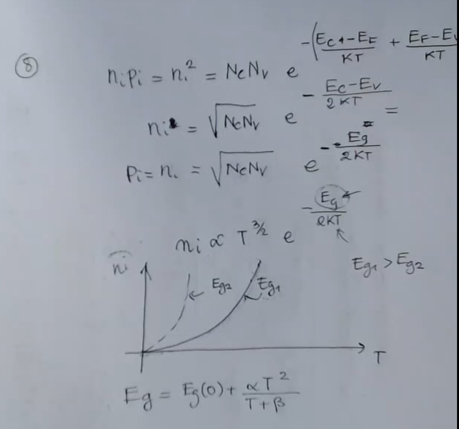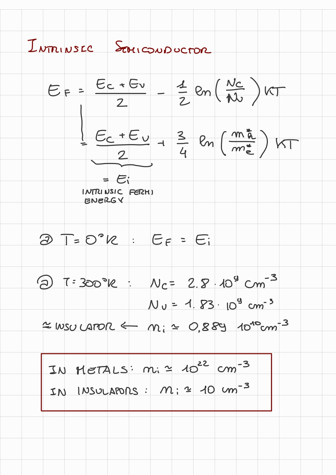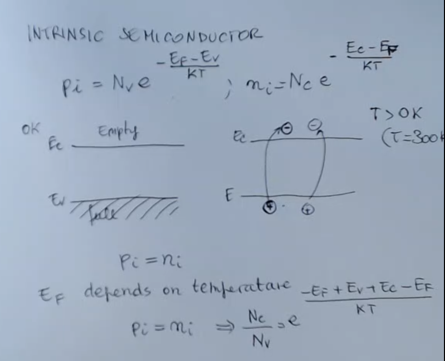 In intrinsic Semiconductors we have that: So we can simplify and say:Where: