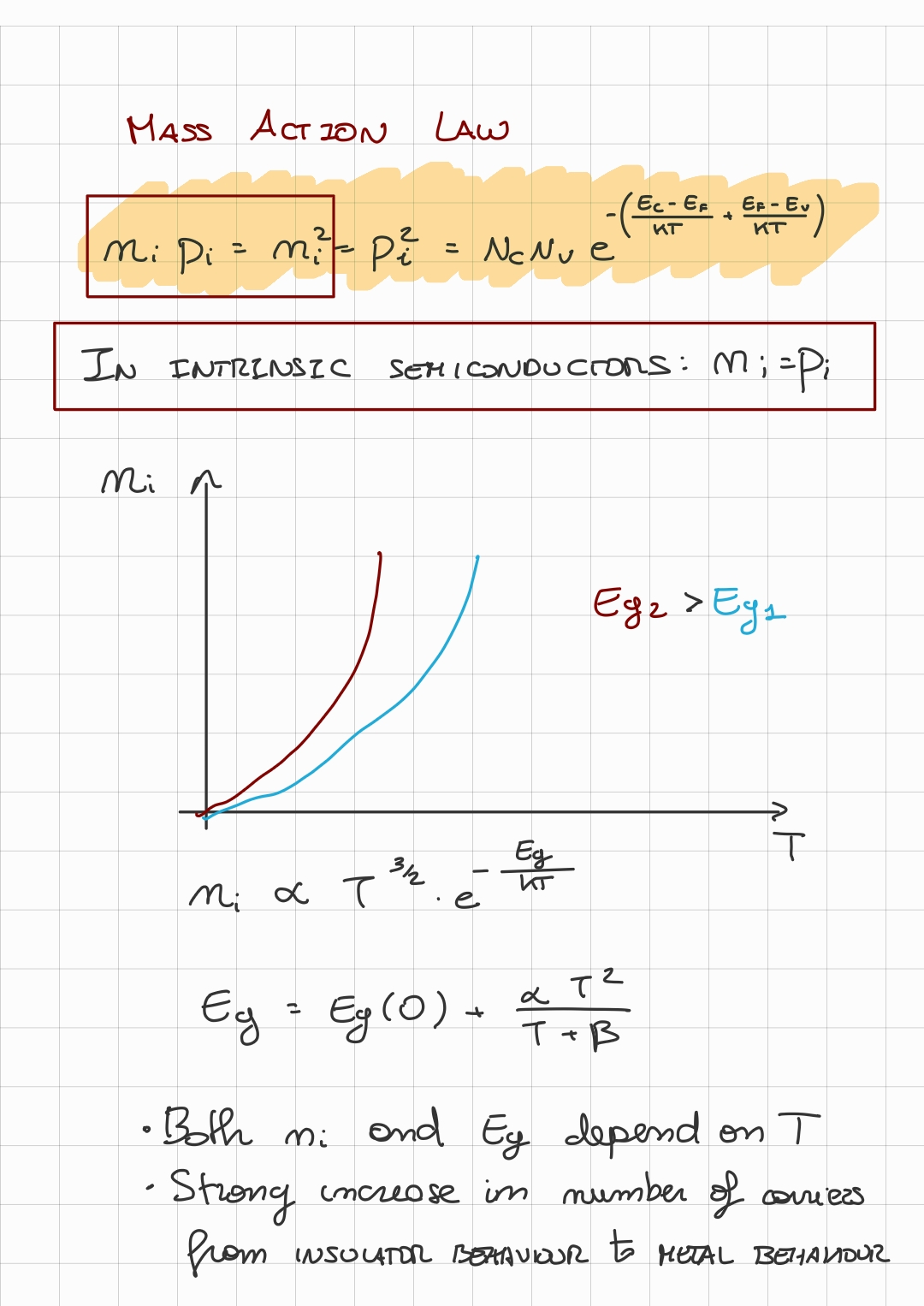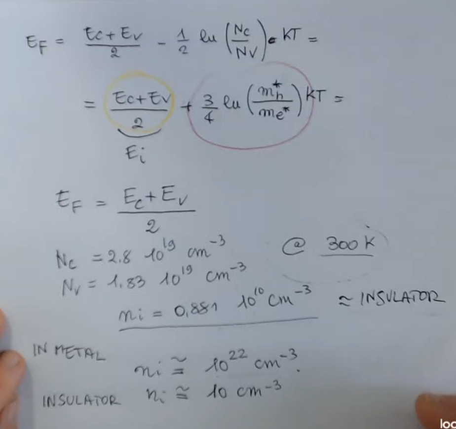 NOTE: We are talking about and , the suffix stands for instrinsic. They are the density of carriers present in an intrinsic semiconductor, we will use them only for Silicon, but this formulas are general for every intrisic semiconductor.