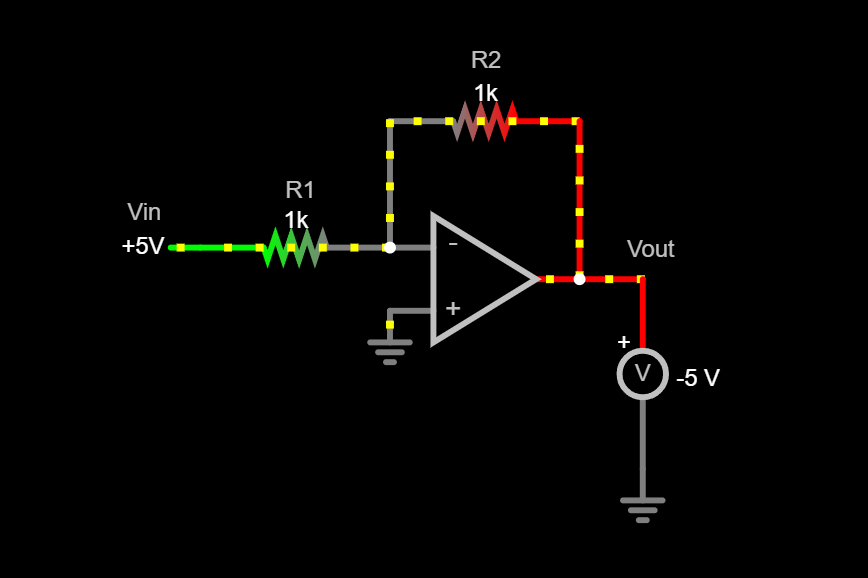 Formula with A(f) and β:Vout=Vin⋅−R1R21+AβAβWhere A(f) is the open-loop gain of the amplifier, often defined as:A(f)=1+jfHfADCAnd:Vout=A(f)⋅(V+−V−)