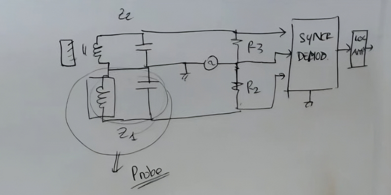 • This circuit uses an Eddy Probe, to represent it I use the symbol of the inductance with 2 lines in front ():