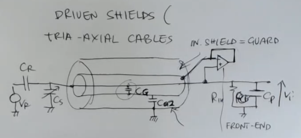 Tho since wire and internal shields are at the same voltage, this capacitance is empty of charge, so the special property of tri-axial cables is that: - : Second shield capacitance, this has charge, so its value is different from .