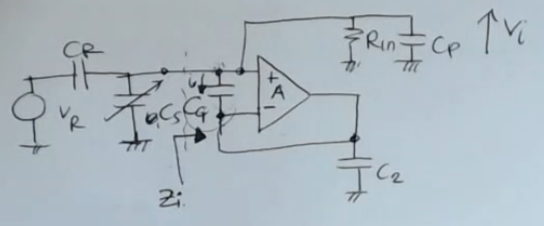 - I will need an amplifier which has a large gain, to reduce the impedace , and a wide band, since we are operating at AC, so it has to use large frequency because of the small value of the capacitance of the sensor ().