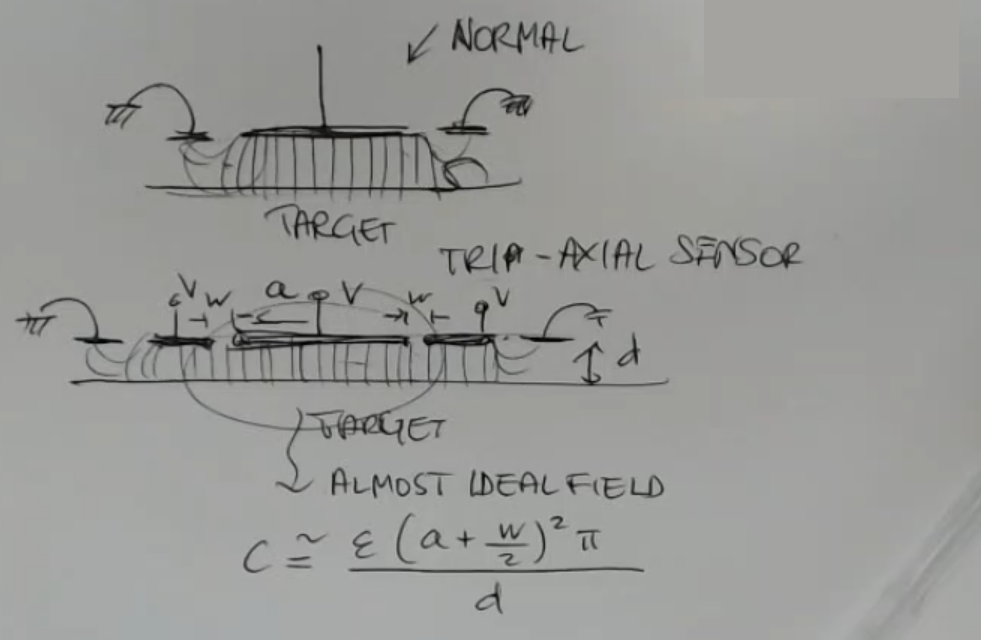 - Normal capacitive proximity sensor and a tri-axial sensor: