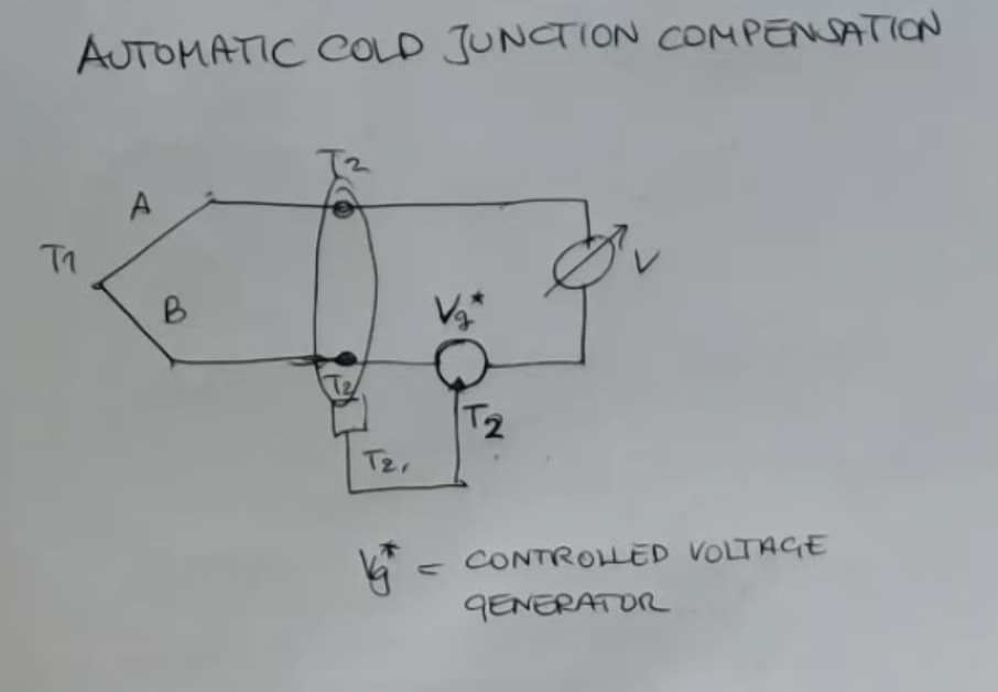 Equivalent electrical circuit of a thermocouple: