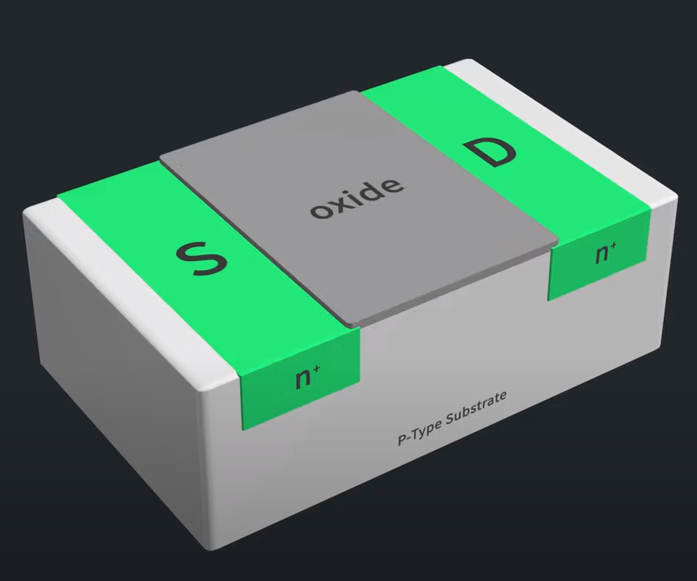 - Oxide: acts as an insulator between the body and the gate (G) terminal.