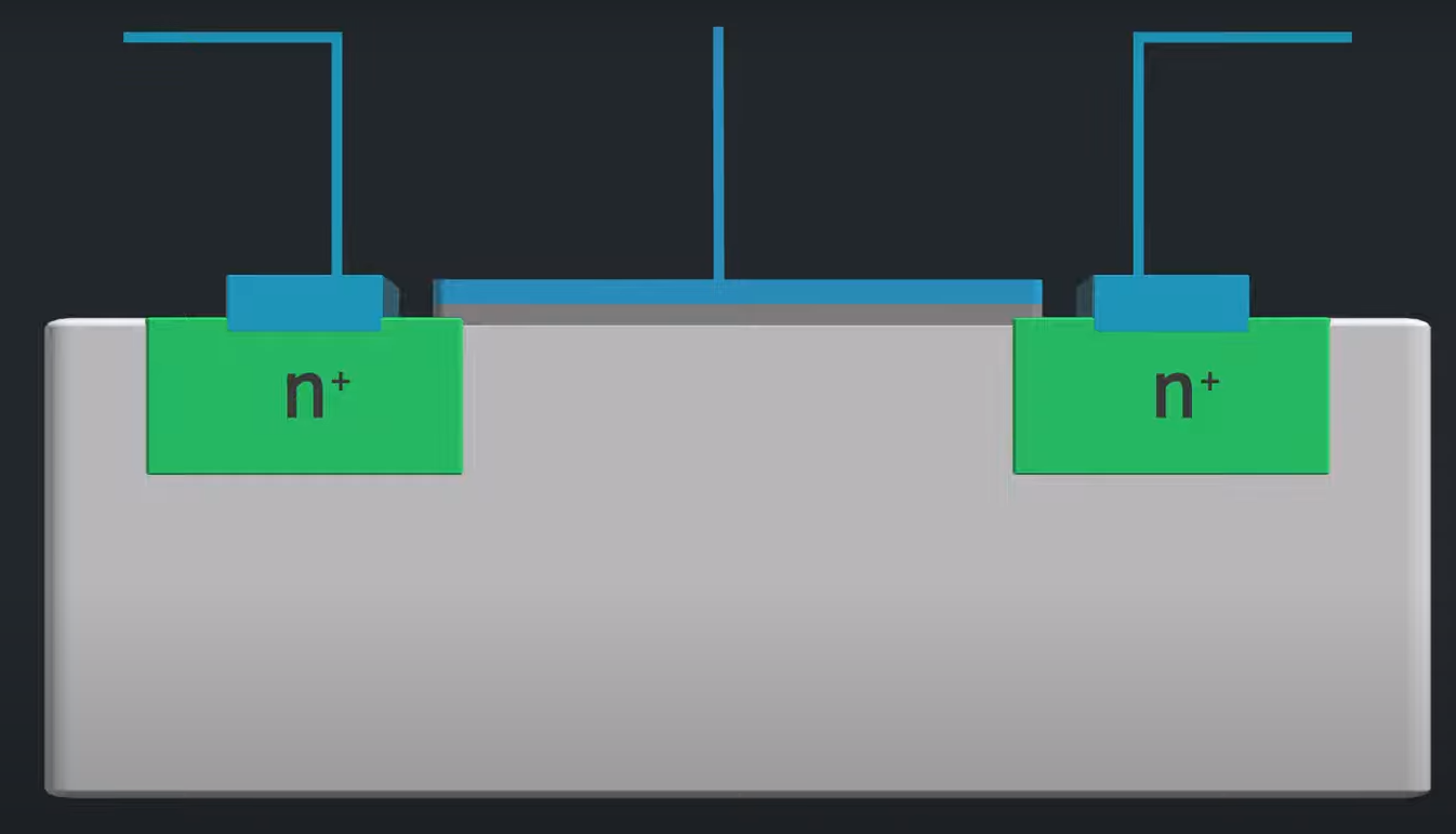 - “Depletion type”: the “channel” (or “channel region”) is formed when the MOSFET is created, so it’s a doped -type region, ==when is low enough, the channel is closed== and no current will flow from source (S) to drain (D).