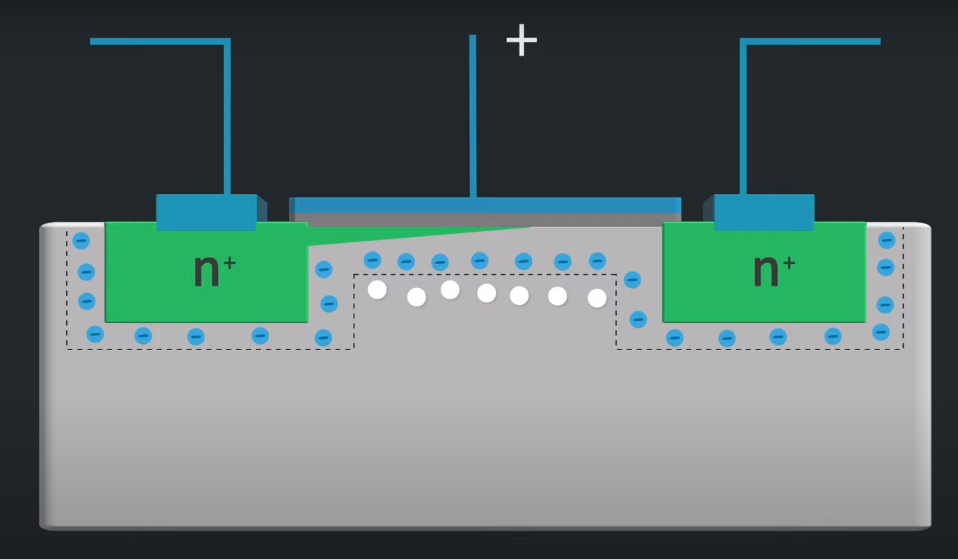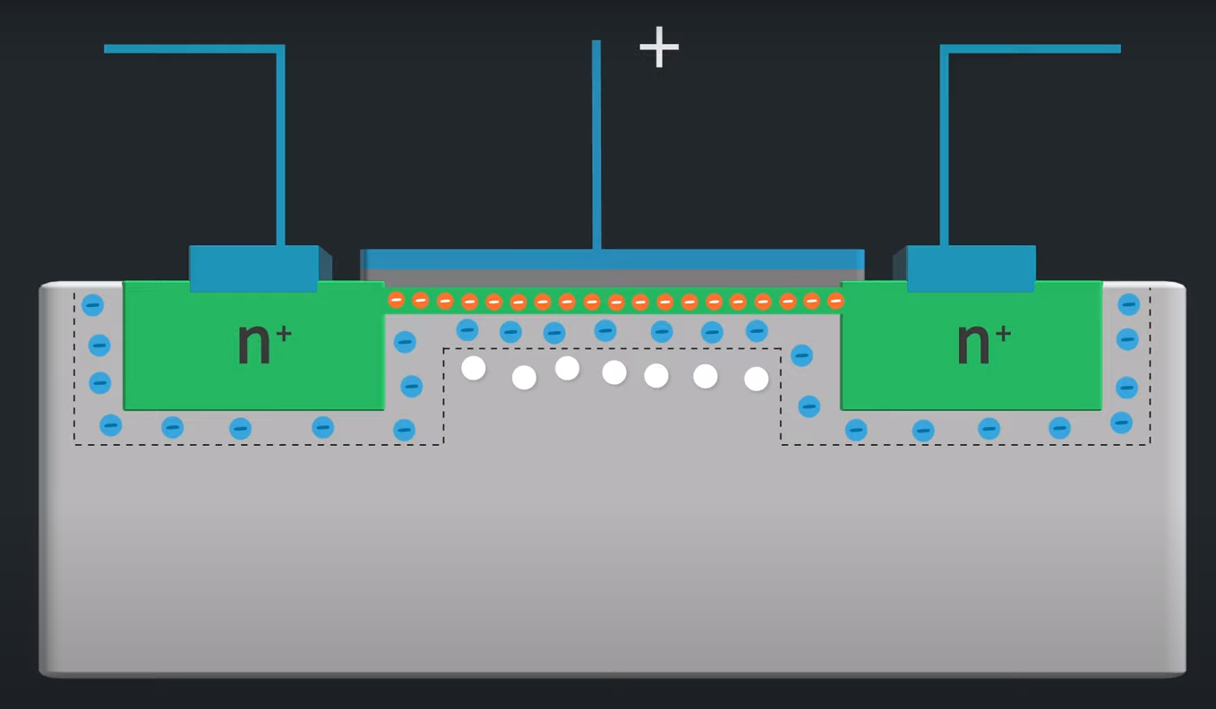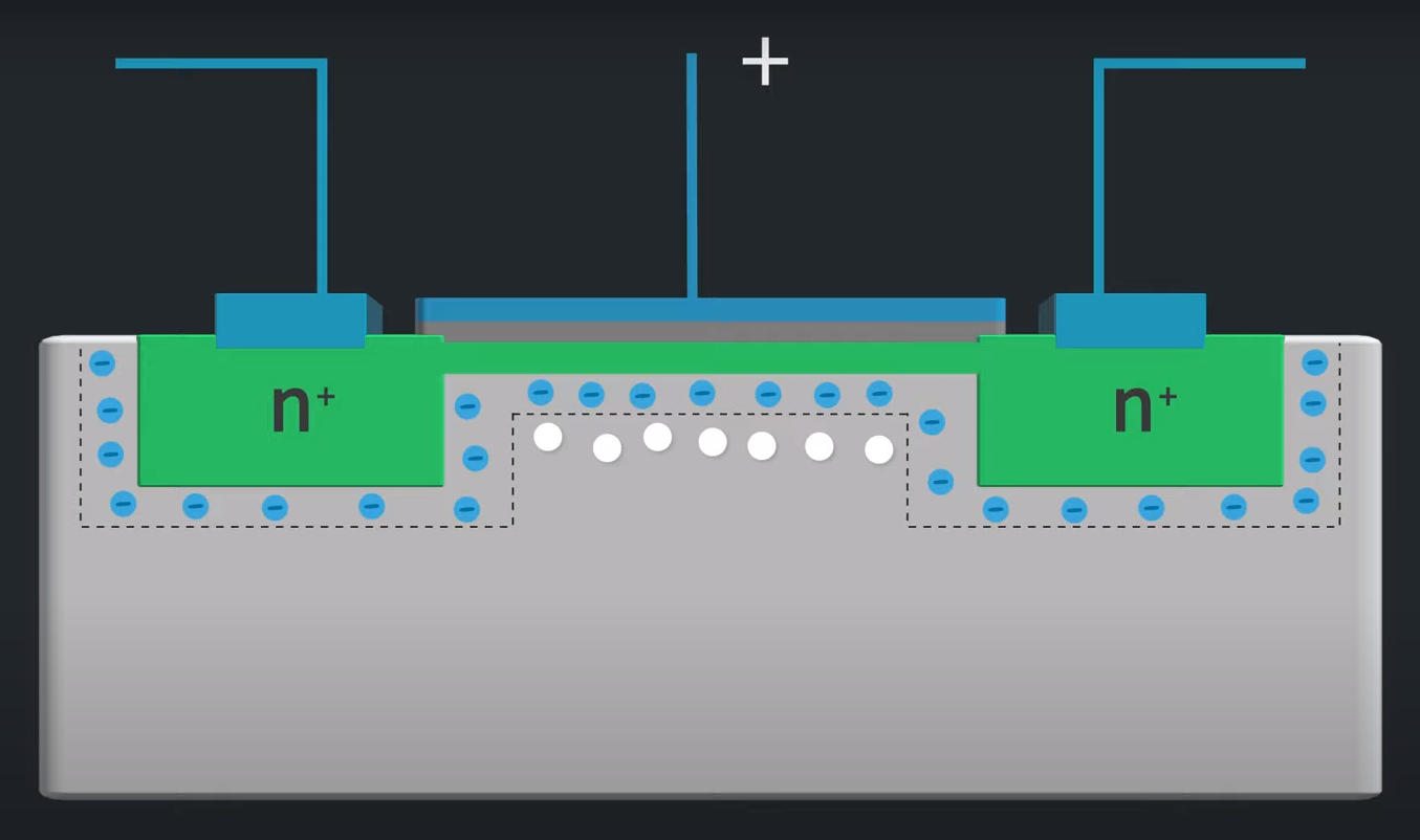 - “Enhanced type”: ==the “channel” (or “channel region”) forms when is great enough==, and allows the passage of current from source (S) to drain (D).