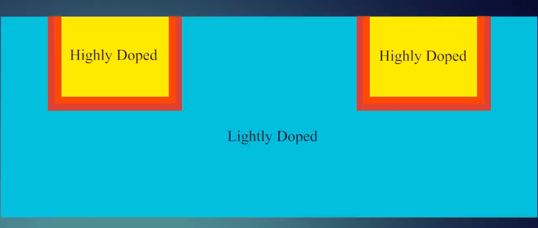 - “n-type”: the body is of n-type lightly doped silicon, while ==source (S) and drain (D) are of n-type heavely doped silicon==.