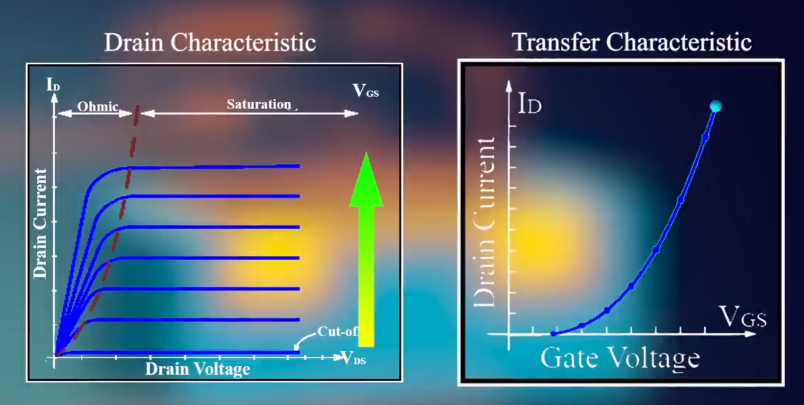 - : voltage between drain (D) and source (S):- : voltage between gate (G) and source (S):