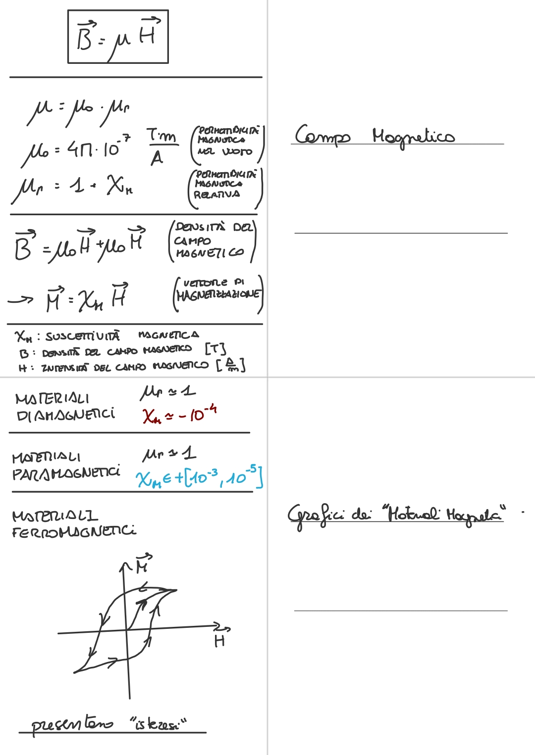 - , where is the magnetic susceptibility, (“suscettività magnetica”) defined similar to the electric susceptibility.
