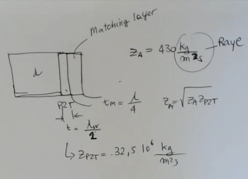 - If we select a matching layer with a certain acustic impedance we will have that the propagation speed, so also the wavelenght can be changed (reduced) at will.