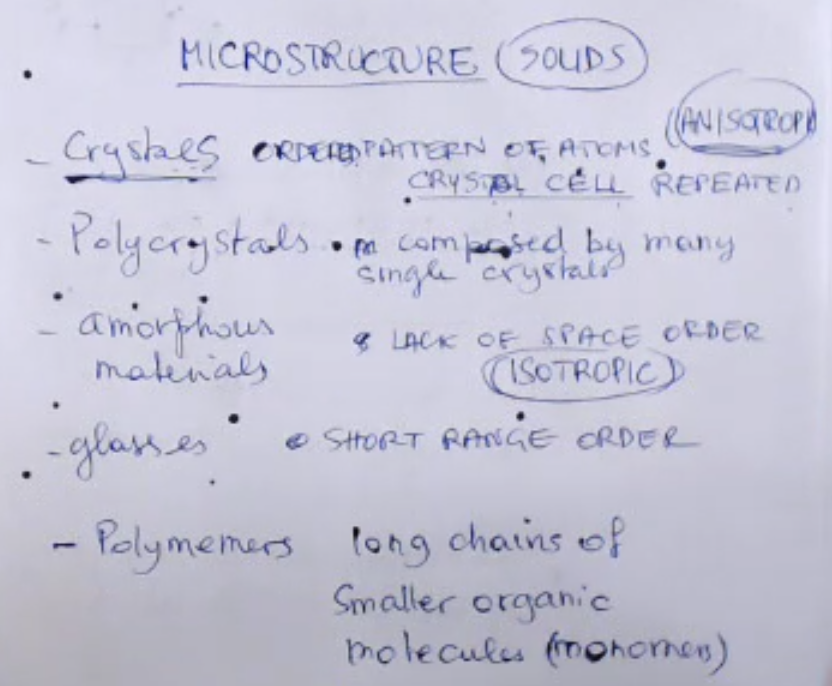 - Solids, which are composed by many single crystals, which are very small, and so this order is maintained in some small domains.