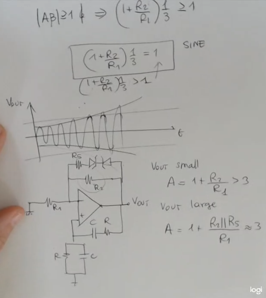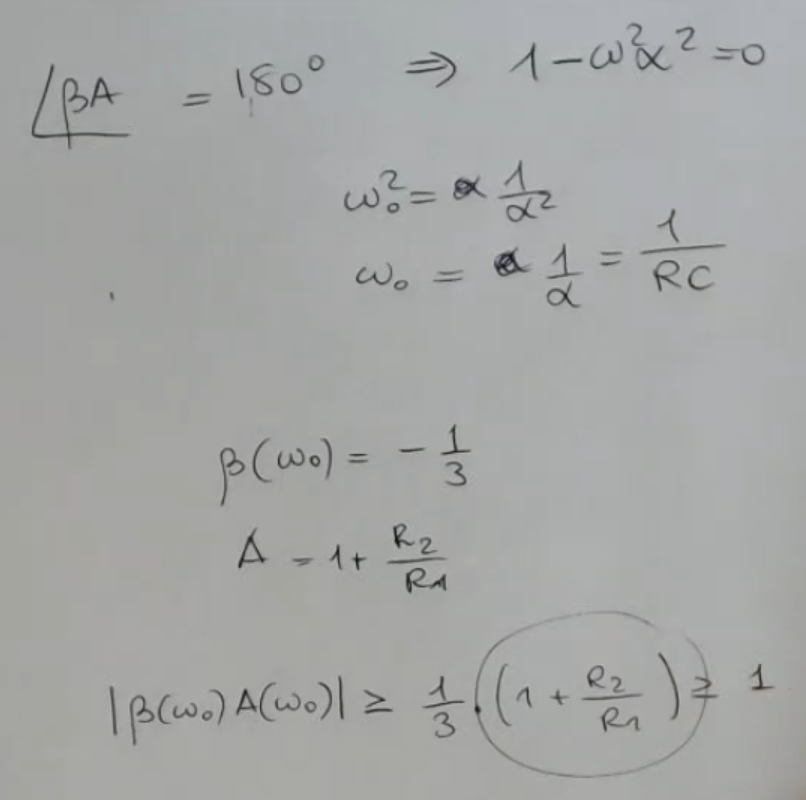 Another way of seeing things: Then we apply the Barkhausen conditions, so that our oscillator does in fact oscillates, and we find: