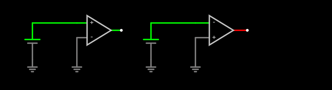 - Notice how the sign of the AO changes the sign of the oputput, but it does not mean that the feedback loop at the is a positive feedback loop and the one at the is a negative one, however oftein it is actually like this, but just thanks to the construction of the loop.