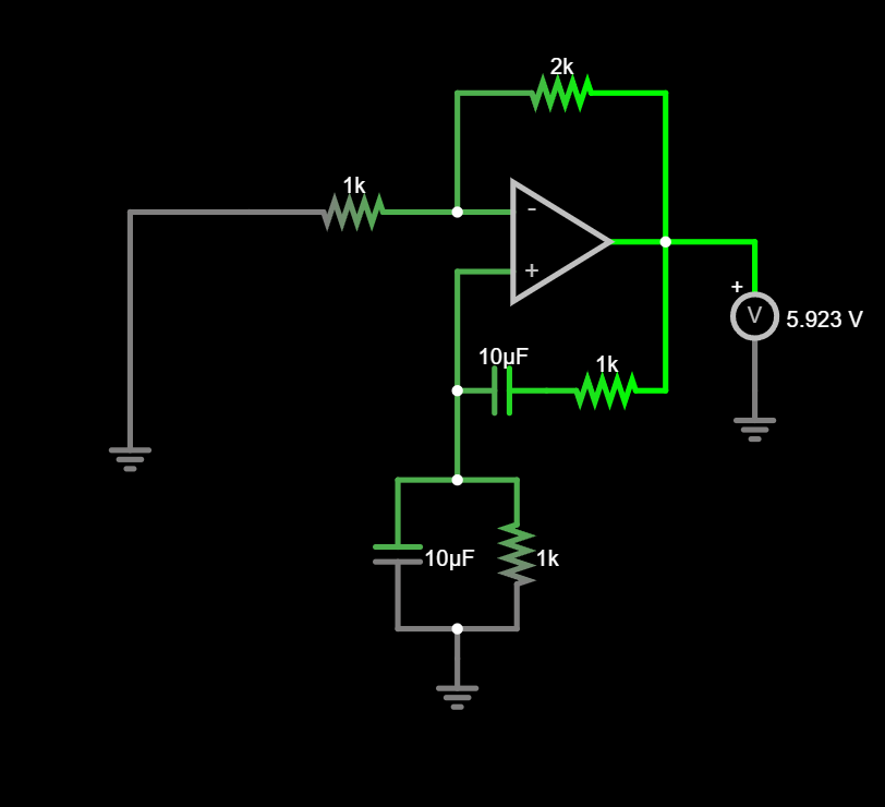NOTE:- In this circuit there is no , this is an ideal oscillator, so it is designed to relay on no exitation (exept the power given to the amplifier by )