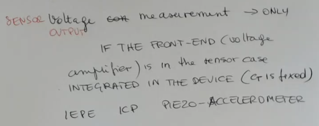 Since the output is an AC, you can exploit the same two wires, because the power supply needed by the amplifier is a DC value, whereas the output of the sensor is an AC value, so you can filter and use the same wires to give both - Sometimes you can use devices where the front end is integrated into the case of the sensor, and in this case the ouptut wires are directly connected to the crystal, so what we have as output is a charge.