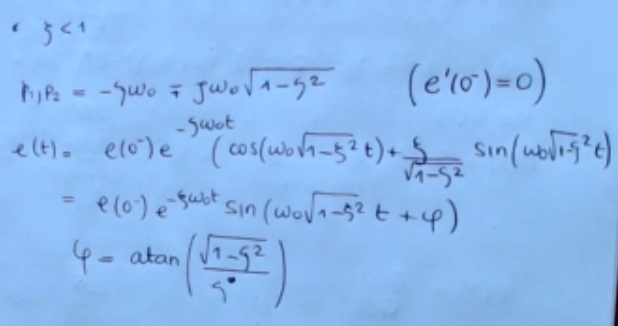 ==The first is if this parameter damping ratio is larger than (so if ), and in this case the two poles belongs to the real numbers and in this case we can write for instance the response to the initial conditions of the system, in this way==: