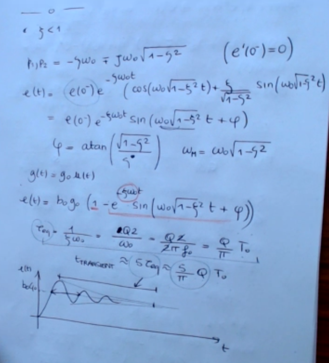 Actually you see that the frequency of the transient response this part here is not exactly the natural frequency, we have this modal frequency which is given by this one, nd this is tell us how long is the time needed for the transient to vanish: