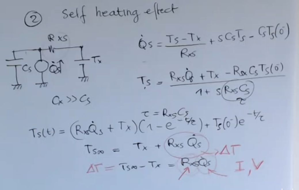 ==While more importantly Q˙S depends on the voltage (V) and current (I) feeding into the sensor, from this factor we have the problem of self-heating, since a higher current or voltage will increase Q˙S, so it will increase the difference ΔT==.