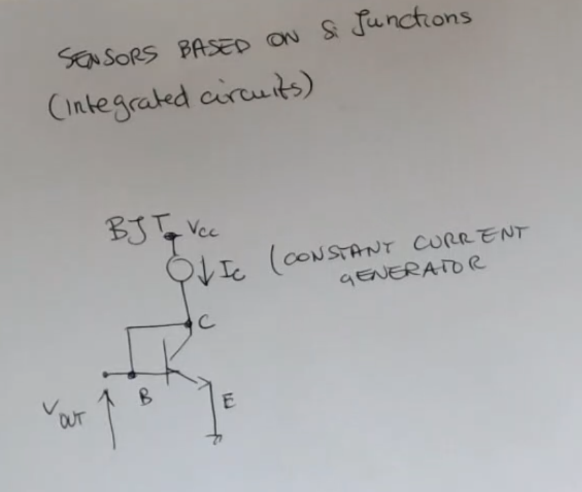 ⇒ therefore it should be compensated. - There are some integrated circuit which exploits the dependence of the conductance in a BJT due to temperature, tho they are a little bit more complex, they encompass also a compensation strategy for the dependence of on temperature.