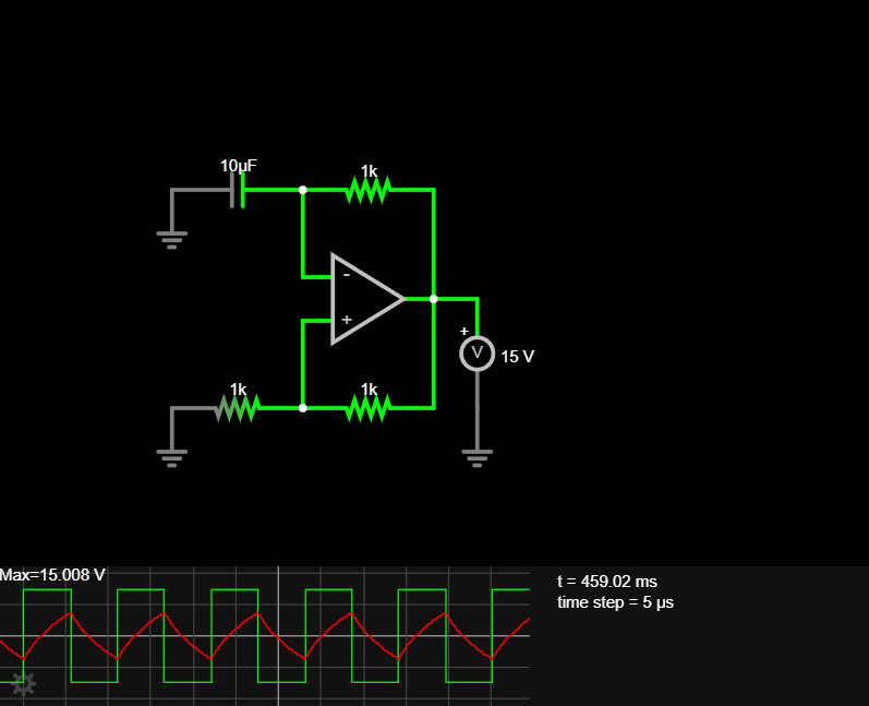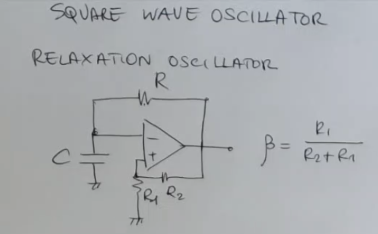 This is an example of a square wave oscillator. ==We will not use it because we go deep into nonlinear behavior==. Formula:T=2RC⋅ln(1+β1−β) Circuit Memory Card