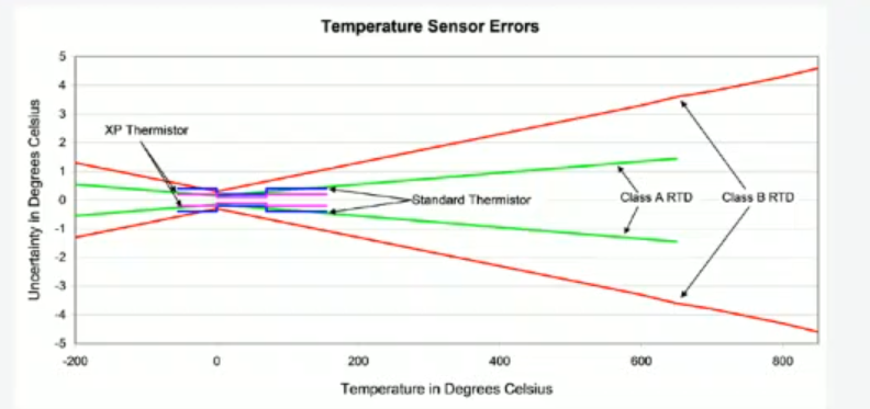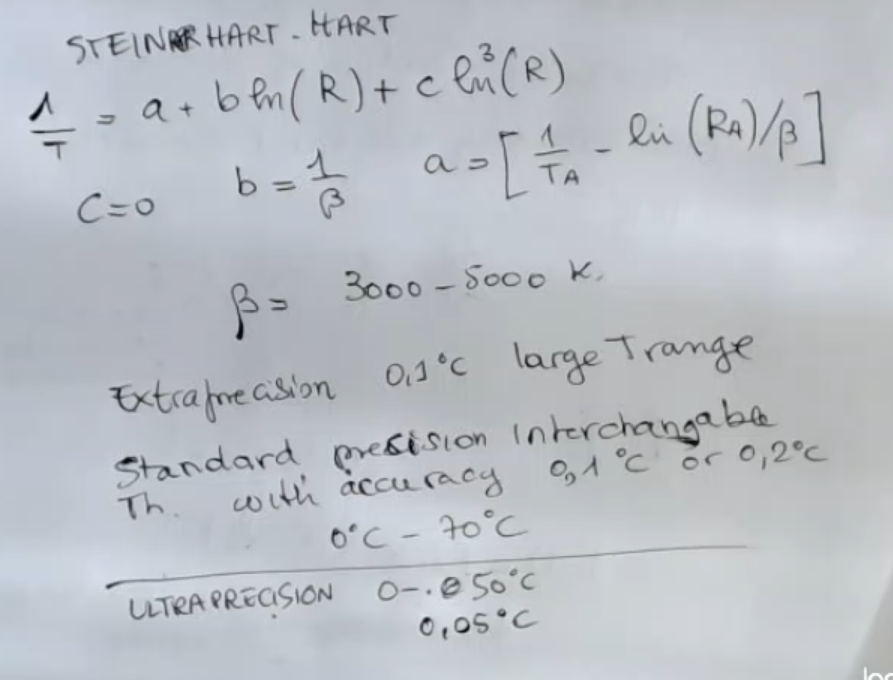 Similarly to how we can define an RTD with the Calendar Van Dusen Equation, we can describe the equation govering a thermistor using the “Steinhart-Hart Relashionship”, that is:Where the coefficients assume these forms: