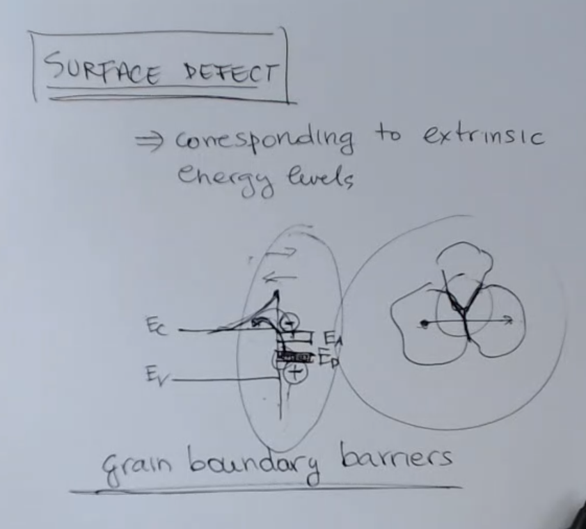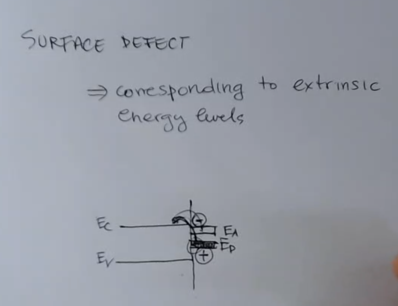 - You can represent a surface defect as a difference in energy levels, here you can see a normal intrinsic silicon represented by and and attached to it an imperfection in the extrinsic silicon, it is represetned as a doped silicon with and the acceptor energy level and donor energy level.