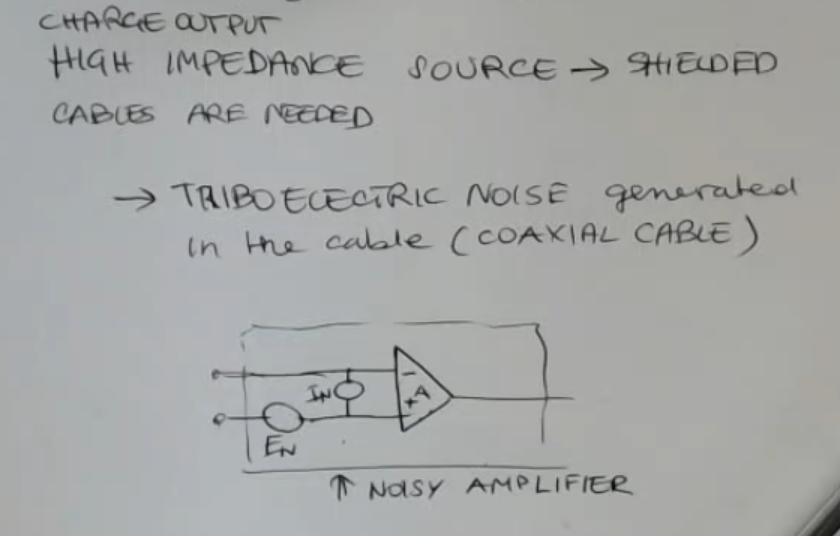 - But there are also other problems related to noise for this kind of devices, which is the noises that are actually generated for instance in the cable, ==this is called βtriboelectric noiseβ and is generated in the cable==.