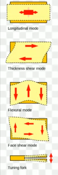 - We have seen the modes: longitudinal, thickness shear, flexural, face shear, and tuning fork: