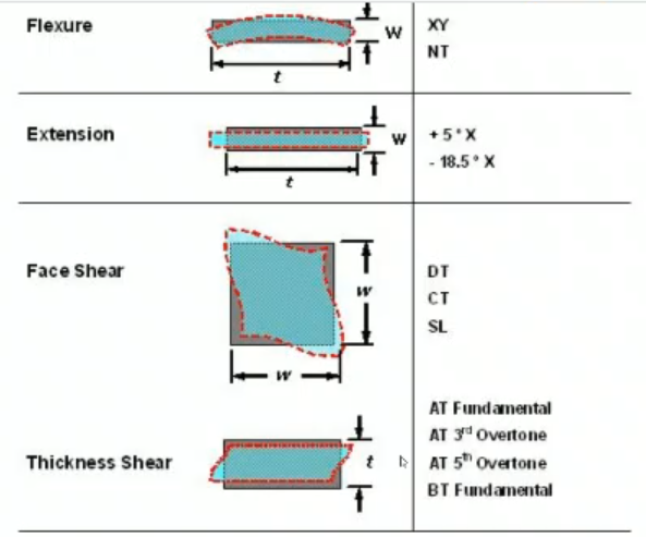 These modes’ names reflect how the cut-quartz works.- One Example is that the Thickness-Shear Mode is particular for a BT-Cut.