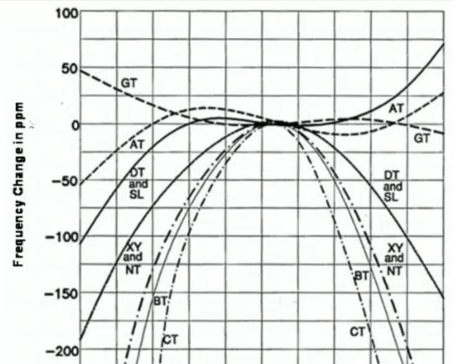 - Also this frequency changes with temperature, and all cuts have a slope around (ambience temperature), this slope is important for stability: IMPORTANTE