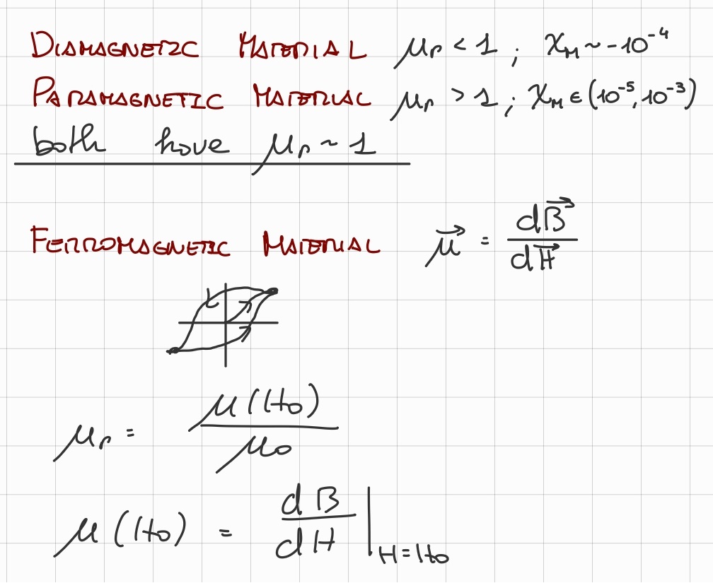 - Ferromagnetic Material: shows hysteresis, so is not constant: