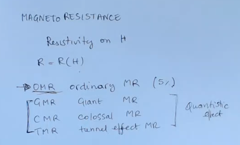 - There are also other types of mangeto resistances, these are all due to “quantistic effects”: