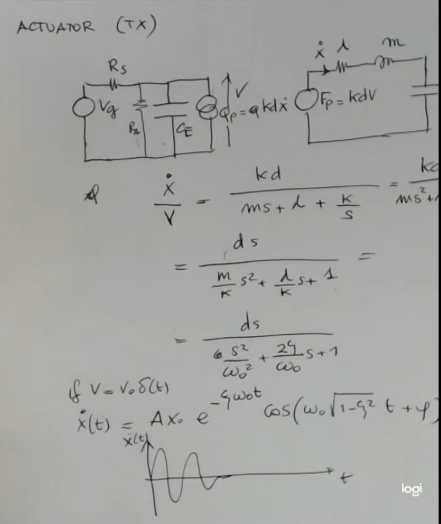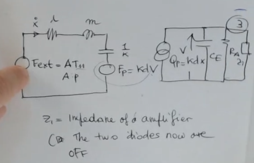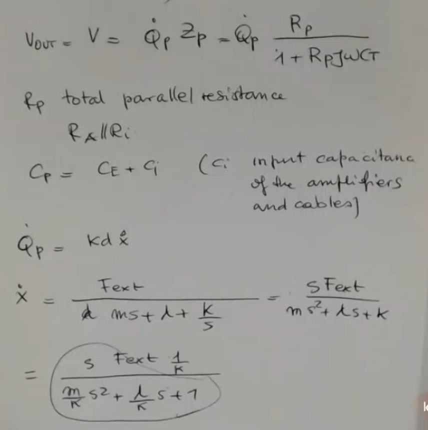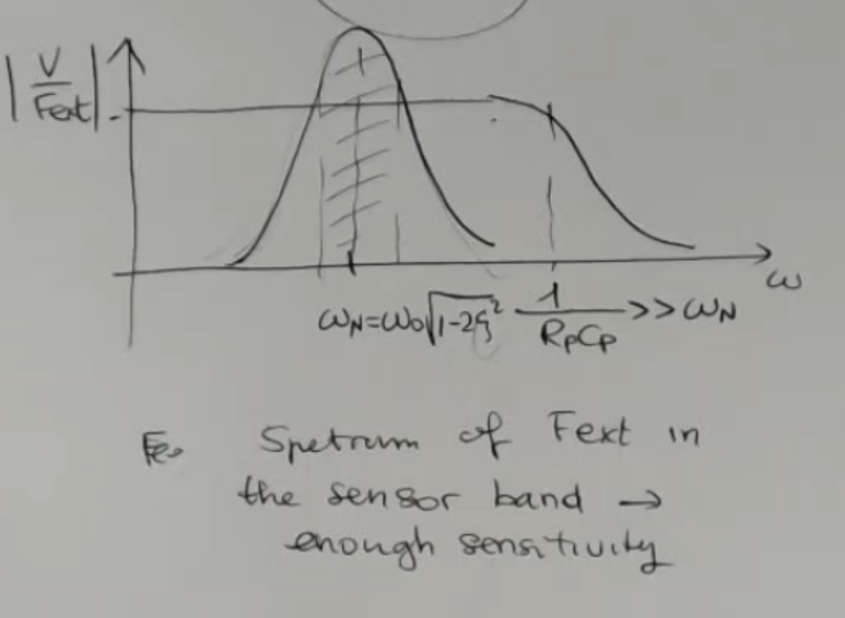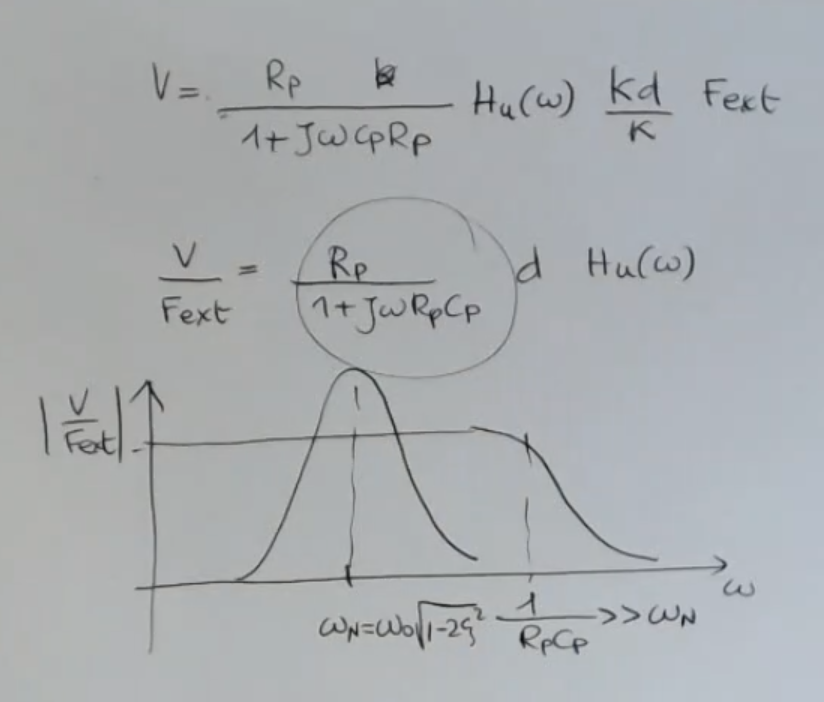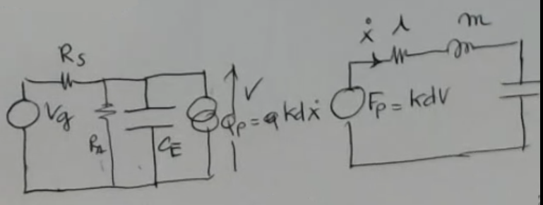 - NOTE: It has the same equivalent circuit as the piezoelectric accelerometer, however the final graph (and formula) is different, in this case we use , while for the accelerometer we used , why?.NOT_SURE_ABOUT_THIS